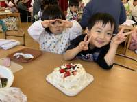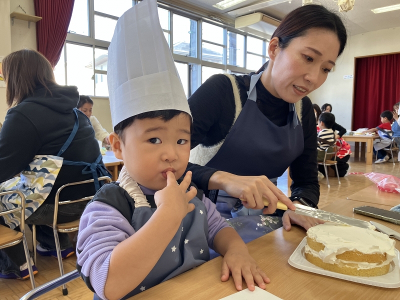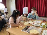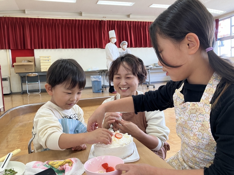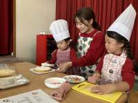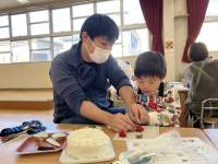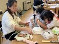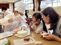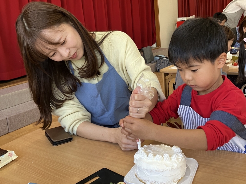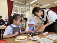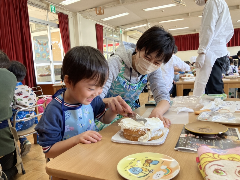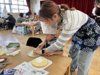 みんなでクリームをぬりぬり、フルーツをトッピング。
