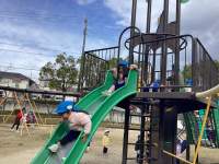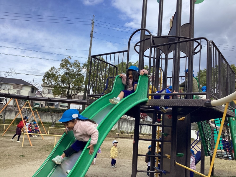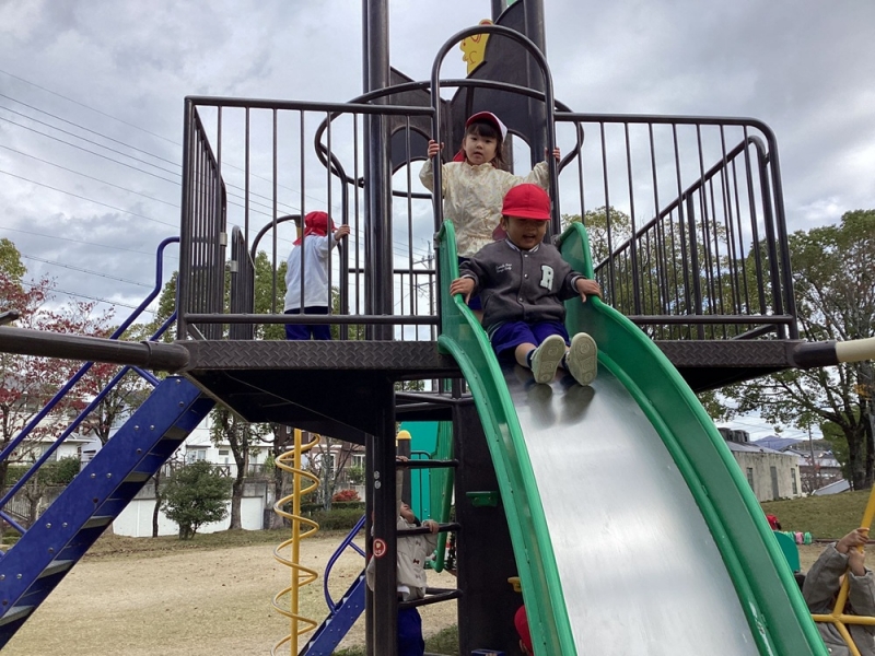 お友だちと元気に走り回り、すべり台など 楽しい遊具で