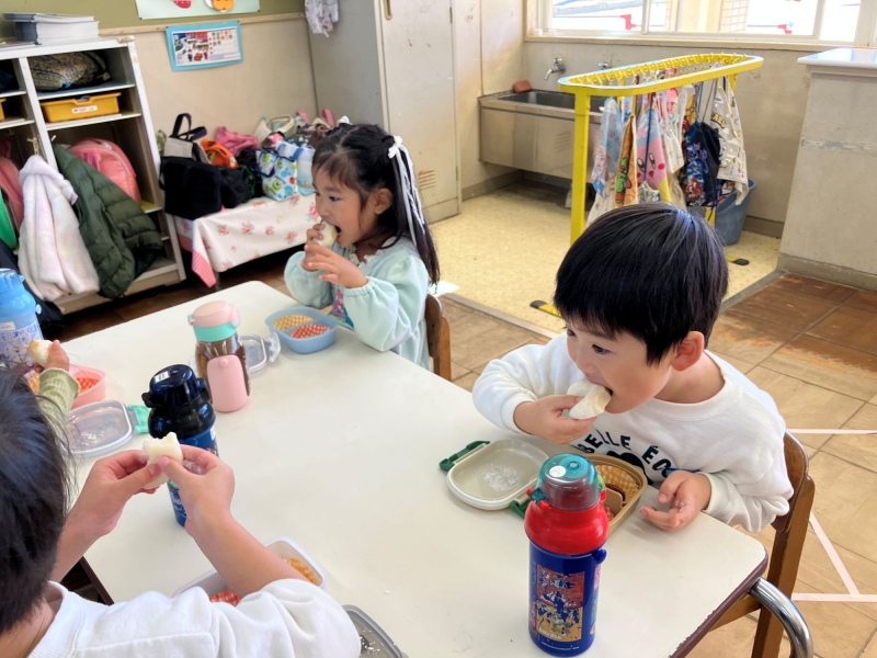 教室では、つきたてのお餅をみんなでおいしくいただき、