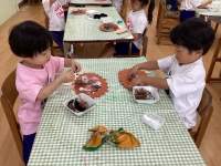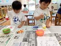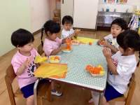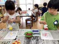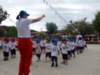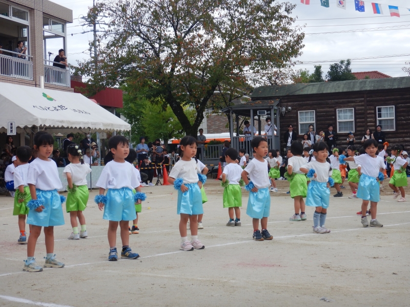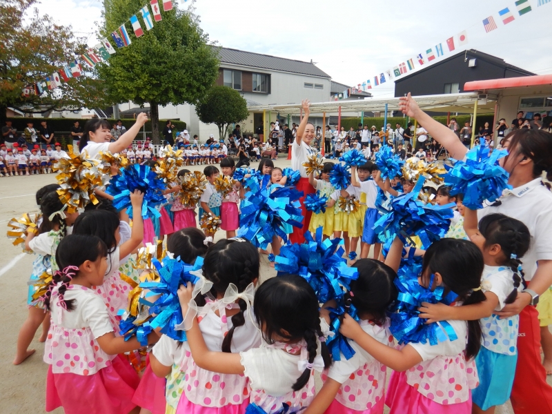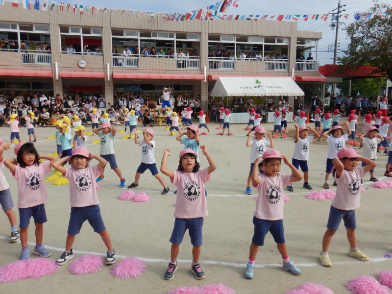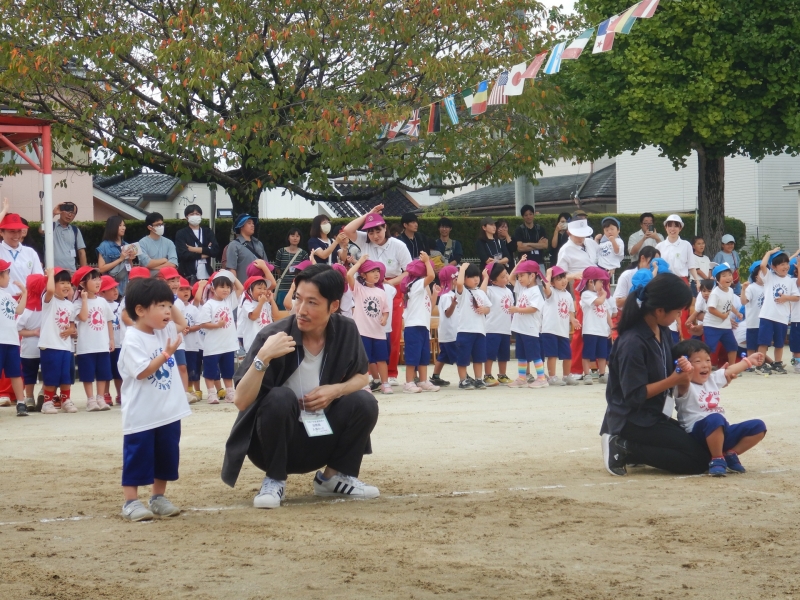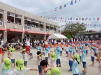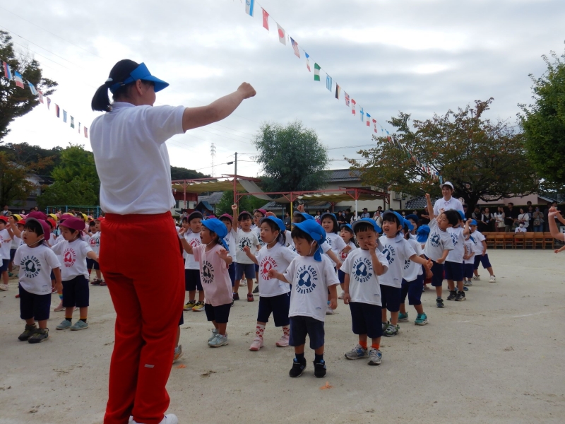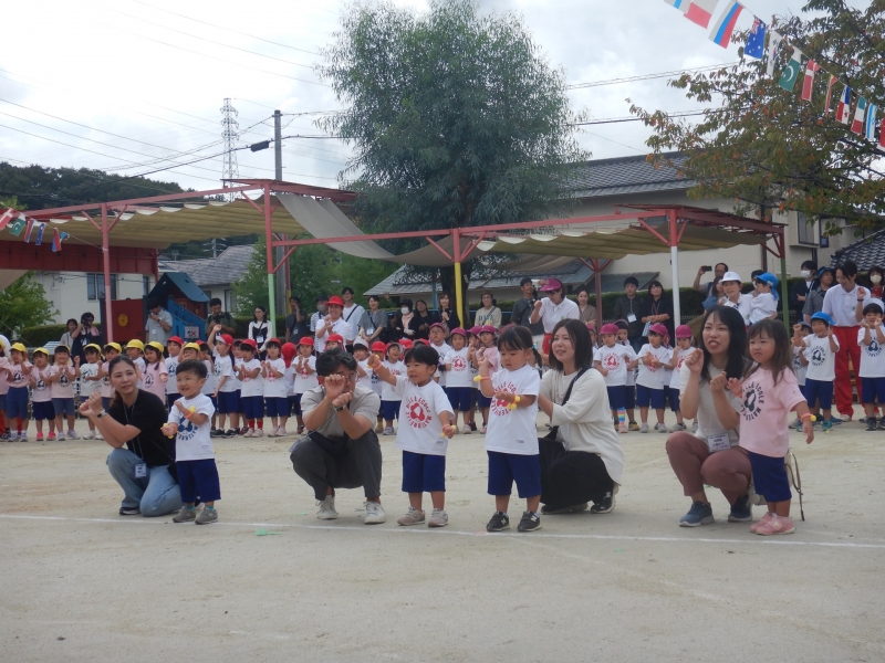 雨が今にも降りそうだった曇り空も、子どもたちの元気な笑顔で雨雲は吹き飛び、日がさし込む園庭となりました。