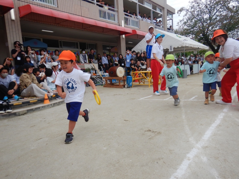 スピードアップしたリレーへと進化した年中さん、そして迫力満点の年長さんのリレーへと続きました。
