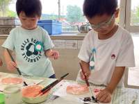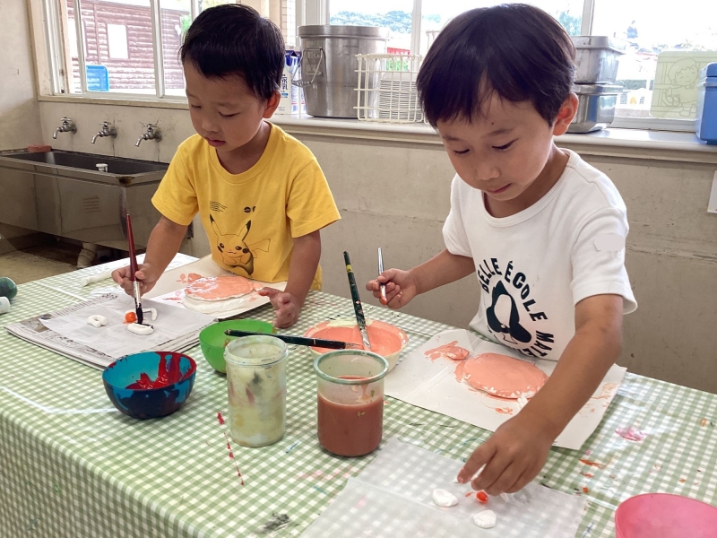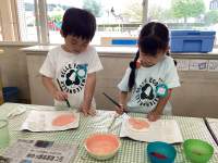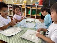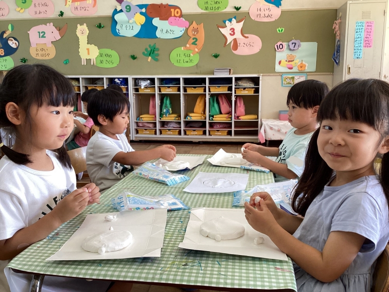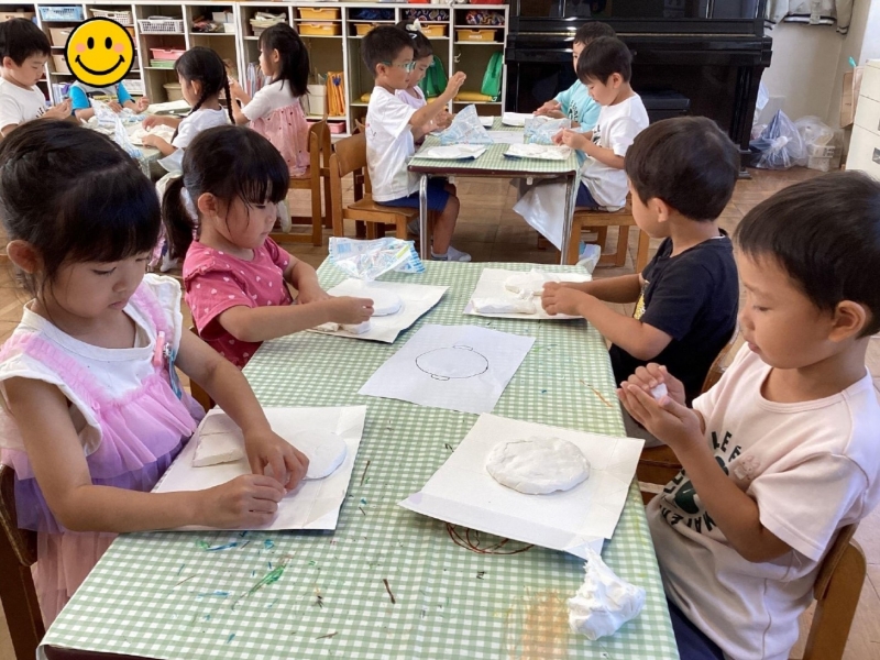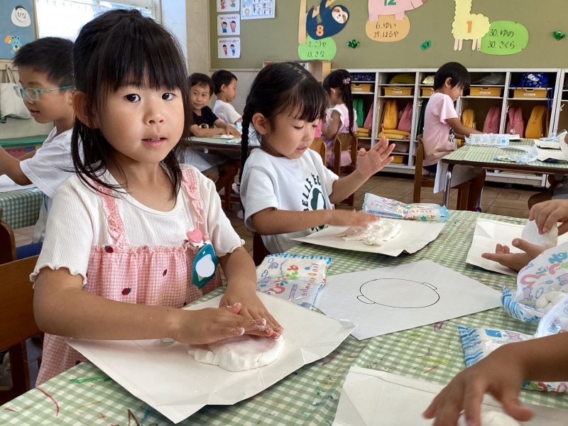 紙粘土を丸めたり、手のひらで伸ばしたり、