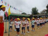 途中、年長の応援団の時間に、無情にも雨がポツポツ・・