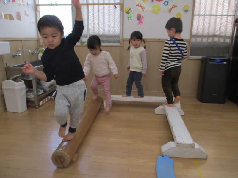 体操で器具あそび。